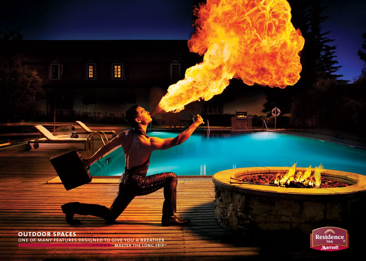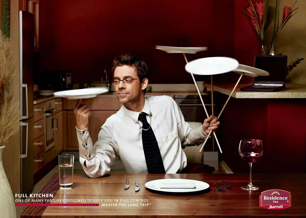 Print und TV Kampagne für Geschäftsreisende in den USA in der die Nutzen der neuen Zimmer dramatisiert werden sollten.